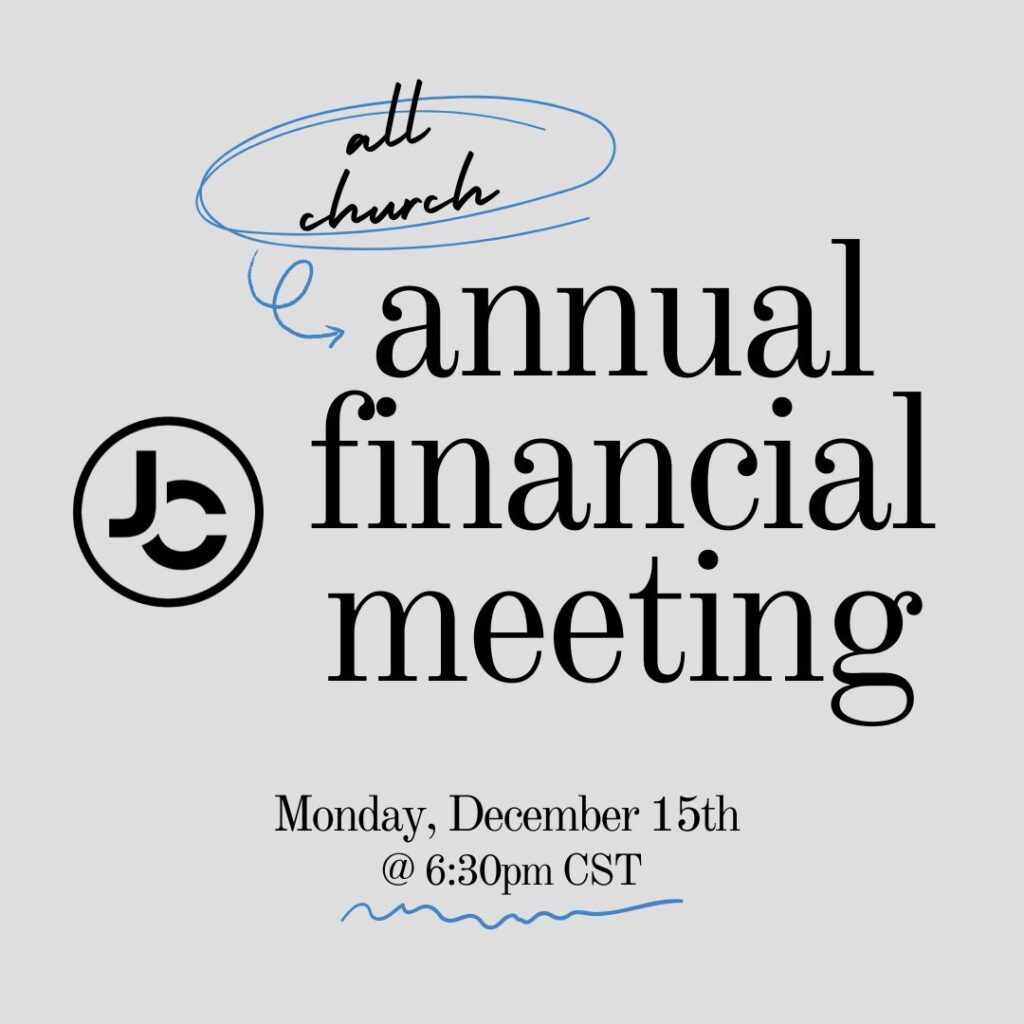 Join us for our annual financial meeting in the Sanctuary on Monday, December 15th at 6:30pm CST.