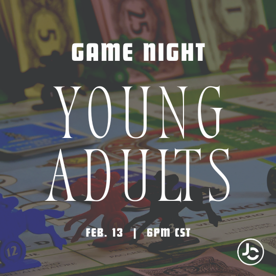 The Young Adult “Game Night” will be hosted on February 13th at 6pm CST in the Navigate Room of Journey Church! The sole focus for this game night is to bring fun, friendship, and a side of competition into our Young Adult community!