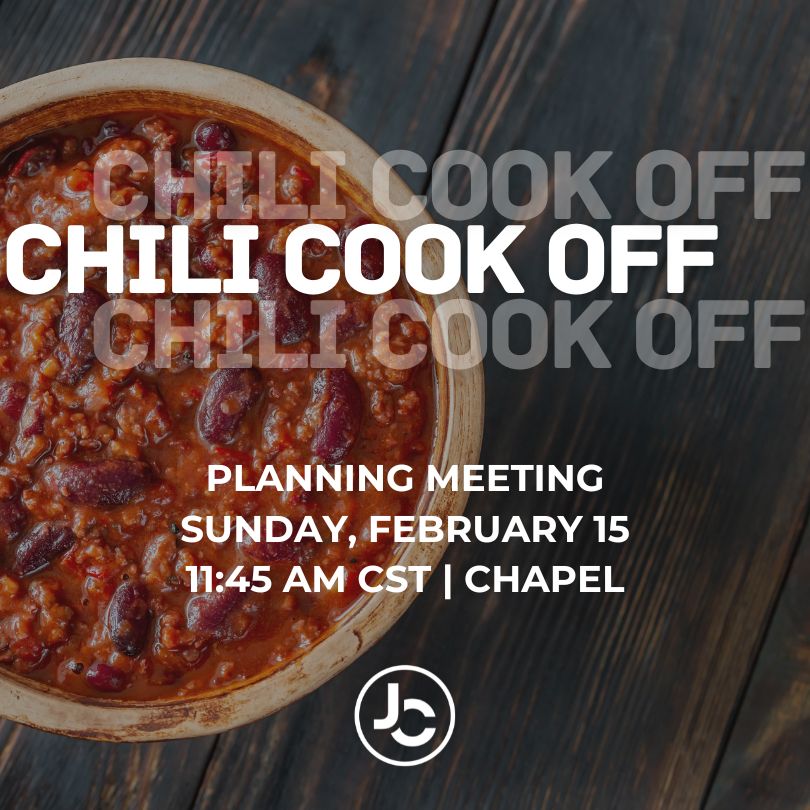 Join us in the Chapel after second service on February 15 at 11:45am to plan our annual Chili Cook-Off for next month! We would love to hear your ideas and have extra leadership as we continue to grow. Feel free to fill out the form, or simply show up. See you there!