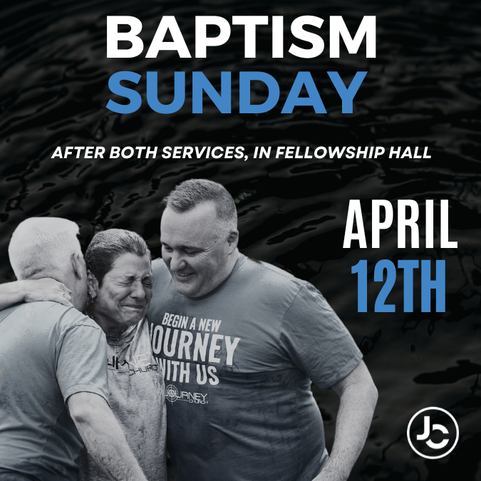 Baptisms will take place on Sunday, April 12th after both services at Journey Church in the Fellowship Hall.